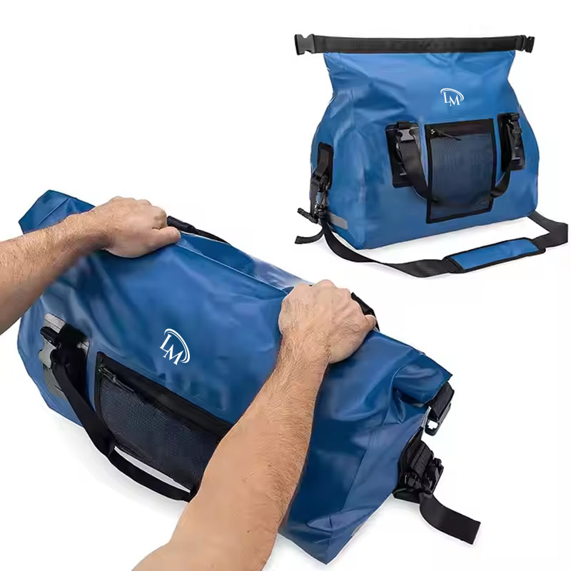 * Featuring a large main compartment with roll-top closure ,simply fold the bag down 3-4 times, buckle, and you are ready to go! Our boat bag is soft sided and completely collapsible to make storage easy!